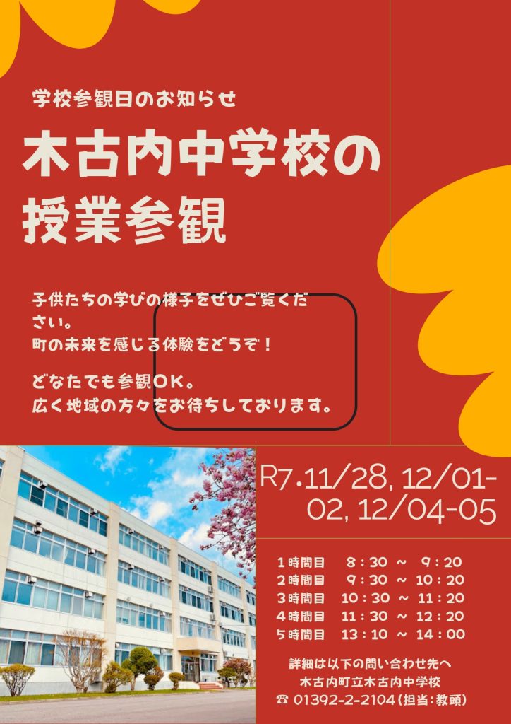(11/28,12/1,2,4,5)木古内中学校 学校参観日のお知らせ